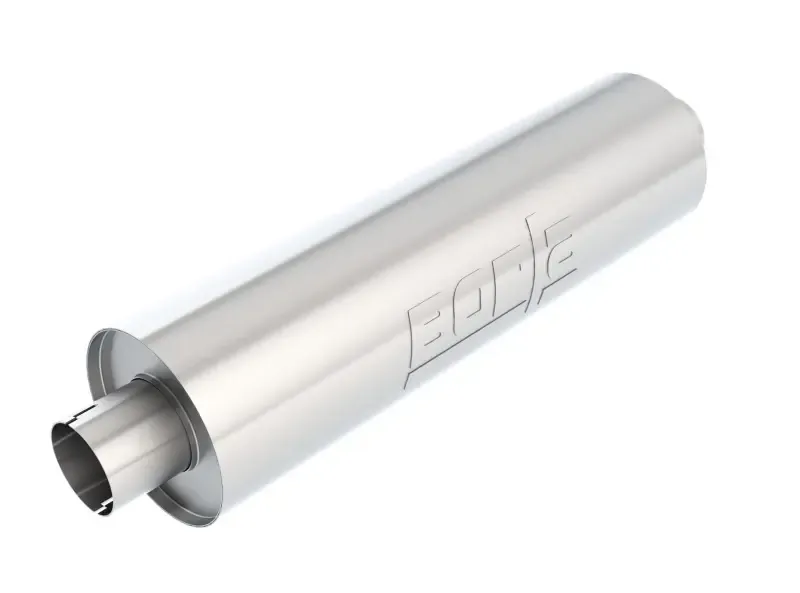 Developed for truck applications and other applications that require a long body muffler. Notched necks for clamp in installation using 1" wide band style clamps 18330 (clamps not included). Alternate muffler with Un-Notched necks is 40436. If clamping, use 3" wide band clamps 18006. Reversible design for installation flexibility. High-quality T-304 austenitic stainless steel will never rust. 100% welded construction for strength. Free Flow design for improved performance. High-temperature continuous-filament fiber (CFF) acoustic material for sound control. Natural mill finish can be brushed or polished prior to installation.