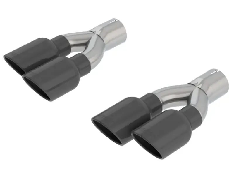 These 4" black chrome on T-304 stainless tips are made to fit BORLA Cat-Back systems 140755 and 140756. They will NOT fit on the original equipment exhaust system and will NOT fit vehicles equipped with OE trailer hitch. Using BORLA Stainless Steel Polish p# 21461 is NOT recommended with these black chrome tips. We suggest cleaning the tips with hot water and a microfiber cloth. Kit contains 2 tip assemblies with a total of 4 outlets. They are designed to be clamped on (clamps not included, use clamps included in Borla system). To install tips, insert inlet ends of BORLA tip assemblies into outlets of rear muffler assemblies. When using these tips the tailpipe adapters (620359) included in the Cat-Back system are NOT used. Built from premium T-304 stainless steel, superior to T-400 series (such as 409), to give you the absolute best in performance and durability. Precision computer numerical control (CNC) manufacturing ensures an accurate fit. BORLA tips are available in a wide range of materials, finishes, sizes, and styles. They are the perfect way to give your vehicle a custom appearance.
