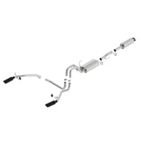 This system features a black chrome finish on T-304 stainless steel tips. Using Borla Stainless Steel Polish p# 21461 is NOT recommended with these black chrome tips. We suggest cleaning the tips with hot water and a microfiber cloth. System can also be used on Crew Cab Standard Bed (78.8") vehicles but requires 60554 Adapter. Borla Cat-Back and Axle-Back exhaust systems feature patented straight-through and multi-core technology designed to unleash hidden horsepower. Increased exhaust velocity adds power, driving excitement, fuel economy, and the distinctive Borla Sound of Power respected by motoring enthusiasts everywhere. Each system is built from premium T-304 stainless steel, superior to T-400 series knockoffs (such as 409), to give you the absolute best in performance and durability. Ultra-smooth mandrel bends ensure maximum flow & power, and precision computer-controlled CNC manufacturing ensures an accurate fit. Best of all, Borla stands behind every system with a Million-Mile Warranty. Just what you'd expect from the world's most experienced (and most winning) exhaust brand.