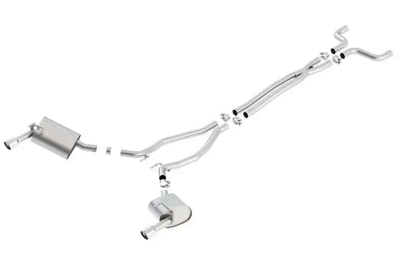 BORLA Type-S / Type-S II Cat-Back & Rear Section exhaust systems feature patented straight-through and multi-core technology to unleash hidden horsepower. Increased exhaust velocity adds power, driving excitement, fuel economy, and a distinctive more aggressive sounding S-Type sound - respected by motoring enthusiasts everywhere. From the design characteristics of the inner cores to the amount of sound-absorbing composite filament, all specifications of BORLA exhaust systems are tuned on a vehicle-by-vehicle basis for an optimum blend of performance and sound. Each system is built from premium 300-series austenitic stainless steel, superior to T-400 series knockoffs (such as 409), to give you the absolute best in performance and durability. Ultra-smooth mandrel bends ensure maximum flow & power, and precision computer-controlled CNC manufacturing ensures an accurate fit. Best of all, BORLA stands behind every system with a Million-Mile Warranty. Just what youd expect from the worlds most experienced (and most winning) exhaust brand.
