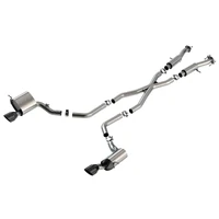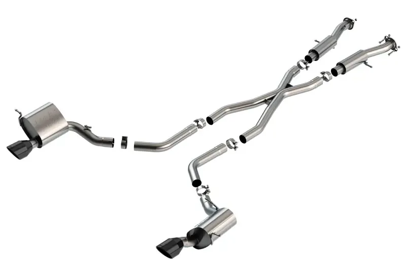 This system features the aggressive ATAK(r) sound and exits through 5" ceramic black on T-304 stainless steel tips. A system with bright chrome on T-304 stainless steel tips is also available. BORLA(r) Cat-Back(tm) & Axle-Back multi-core technology is designed to unleash hidden horsepower. Increased exhaust velocity adds power, driving excitement, fuel economy, and the distinctive BORLA(r) Sound of Power respected by motoring enthusiasts everywhere. The system contains a merge X-pipe for increased performance and improved sound. Each system is built from premium T-304 stainless steel, superior to T-400 series knockoffs (such as 409), to give you the absolute best in performance and durability. Ultra-smooth mandrel bends ensure maximum flow & power, and precision computer numerical control (CNC) manufacturing ensures an accurate fit. Best of all, BORLA(r) stands behind every system with a Million-Mile Warranty. Just what you'd expect from the world's most experienced (and most winning) exhaust brand.