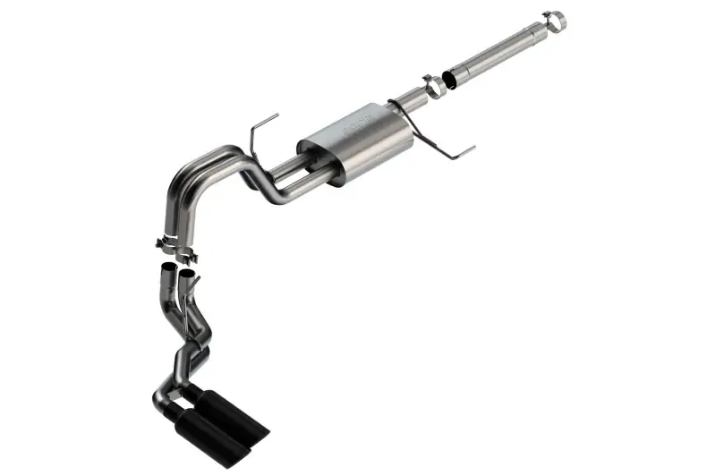This BORLA Cat-Back system was specifically designed to enhance the power and sound of the Ford F-150 equipped with the 3.5L PowerBoost engine. It includes 4" black chromed T-304 stainless steel tips and a dual side exit configuration. Add Adapter 60556 For Crew Cab With Standard Bed (6' 7") 157.2" Wheelbase vehicles. The entire system is made of T-304 stainless steel and utilizes computer numerical control (CNC) manufacturing techniques that ensure an accurate fit. This system features the S-Type sound that gives you an aggressive sound with no drone. It is also available with bright chromed T-304 stainless steel tips. All this is backed by our unsurpassed Million Mile Warranty.System Features: Cat-Back System Dual Side Exit 4" Black Chrome On T-304 Stainless Steel Tips S-Type Sound Level T-304 Stainless Steel Construction Bolt-On Installation Million Mile Warranty