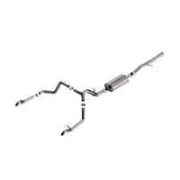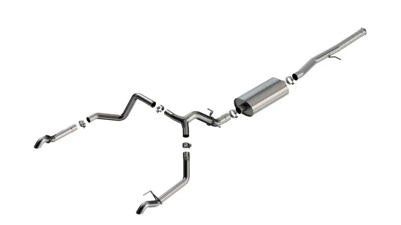 This system features the mellow BORLA(r) Touring sound level and turn down tailpipes. It was designed specifically for the Silverado 1500 ZR2 and Sierra 1500 AT4X and delivers great sound without any drone. BORLA(r) Cat-Back(tm) & Axle-Back exhaust systems feature patented straight-through and multi-core technology to unleash hidden horsepower. Increased exhaust velocity adds power, driving excitement, fuel economy, and the distinctive BORLA(r) Sound of Power respected by motoring enthusiasts everywhere. Each system is built from premium T-304 austenitic stainless steel, superior to T-400 series knockoffs (such as 409), to give you the absolute best in performance and durability. Ultra-smooth mandrel bends ensure maximum flow & power, and precision computer numerical control (CNC) manufacturing ensures an accurate fit. Best of all, BORLA(r) stands behind every system with a Million-Mile Warranty. Just what you'd expect from the world's most experienced (and most winning) exhaust brand.