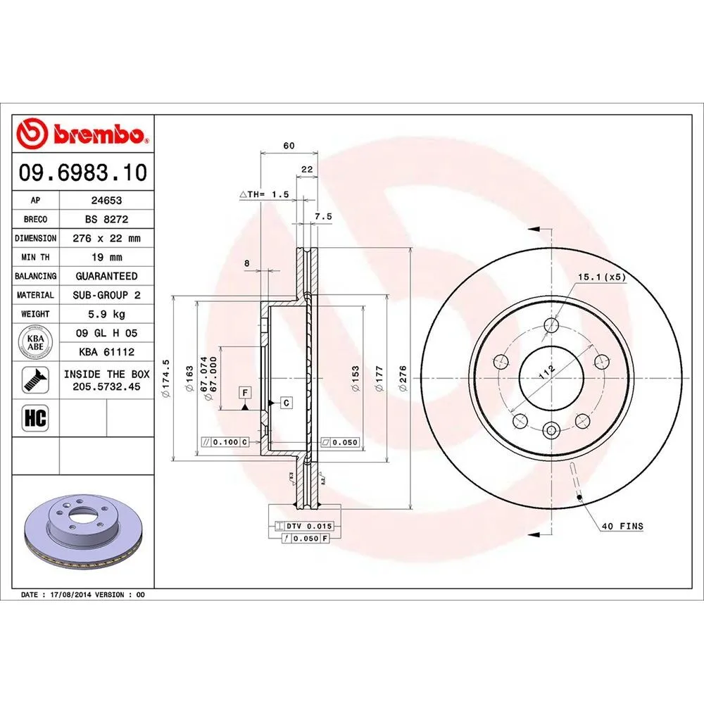 Are you looking for OE replacement brake disc rotors for your vehicle? Look no further than the 09.6983.10 single disc rotor from Brembo, the choice of champions and the biggest name in braking systems.