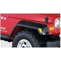 With their recessed stainless steel bolts and massive presence, Pocket Style Fender Flares are a Bushwacker original and an off-road icon. They give you the hard-core look of bolt-on flares, with no body-side sheet metal drilling required. Pocket Style Fender Flares are custom-designed for your vehicle to complement oversized tires and high-clearance lift kits. You can mount them right out of the box with their tough, OEM-style matte black finish they're UV protected so they won't chalk. You can also paint them to match or accent the body color for a factory-custom look. Pocket Style Fender Flares are made from our thick, warp-resistant Dura-Flex 2000 material and tailor-made for added durability and flexibility on the trail. When you need maximum tire coverage with minimum time and effort, it's in the pocket. Pocket Style Fender Flares from Bushwacker.