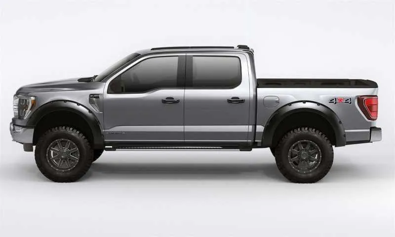 Bushwacker Forge(R) Fender Flares are new to the Bushwacker line up and offer the popular rivet style with a rugged textured finish. The new Forge flare comes with black rivet hardware for the to highlight the look of a bolted-on flare. These flares complement oversized tires while providing tire protection. Made with our durable ABS Material it provides a dense, hard and scratch-resistant surface, flexible enough to bend without breaking.