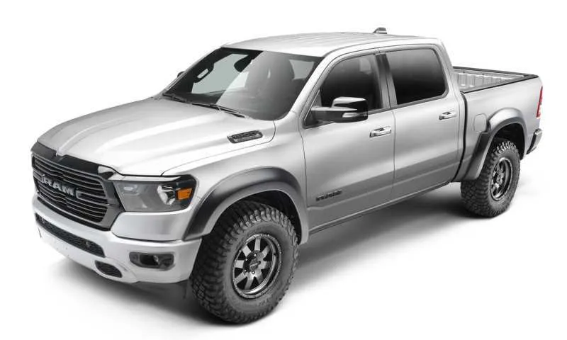 You've equipped your vehicle with oversize wheels and tires for serious off-road traction and clearance. Now you need extra tire coverage to protect your rig's body and maybe even comply with local laws. Bushwacker Extend-A-Fender Flares deliver premium-grade protection and style matched to oversized tires, yet as tough as they are, they go on easily with no drilling required. You can install them in minutes and enjoy them for years. Our exclusive Dura-Flex 2000 material is designed for added durability and flexibility with built-in UV protection. Your Extend-A-Fender Flares resist chalking, cracking, and warping, whether you leave them with their OEM-style matte black finish or paint them for a totally personalized look. Either way, your truck will look factory-equipped for your off-road tires. Extend-A-Fender Flares go on easy, perform tough, and look great.