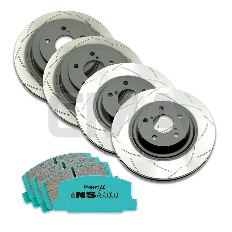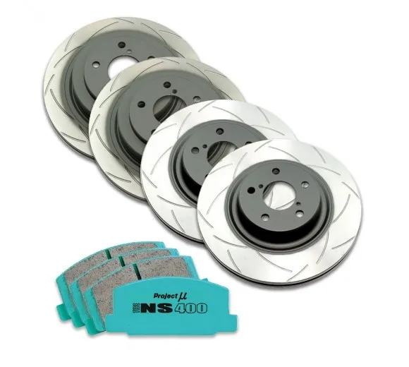 A great value bundle to upgrade the braking performance of your car. The Street Series T2 Slotted brake rotor is designed for every day vehicles with the added safety and performance that slotting provides. Project Mu NS-EP street pads are developed specifically for street use. Guaranteed to outperform OEM pads, NS-EP pads are a reliable simple way to upgrade your braking performance for minimal cost.
