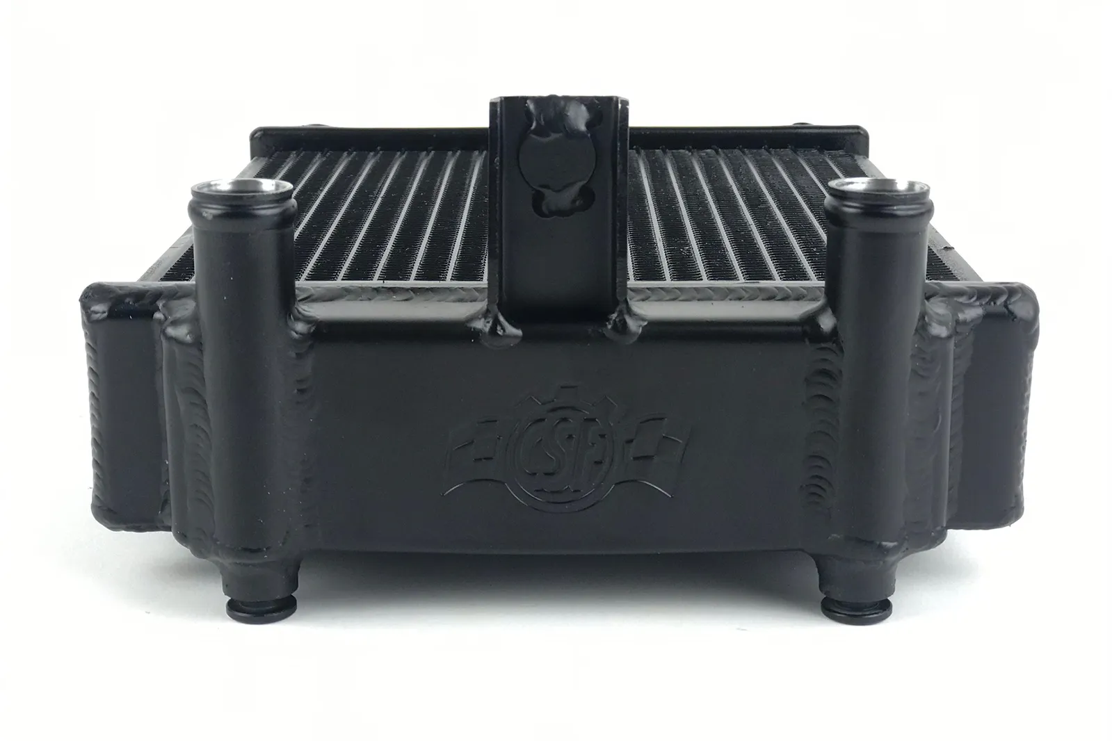 CSF has over 5 decades of experience manufacturing radiators. So when it comes to keeping your engine cool and your A3/S3 running at its best, a CSF High-Performance All-Aluminum Radiator is the obvious choice. Designed to perform on the street or at the track, a performance radiator is a must-have for both high horsepower builds as well as race vehicles which need added cooling performance in motorsports environments. This radiator features a 2-Row core with CSF's exclusive B-Tube Technology: Unlike a regular oval shape "O" type radiator tube, CSF uses a specially engineered tube in the shape of a "B". These "B-tubes" are carefully formed and then brazed over the seam to seal. CSF is able to use thinner and lighter aluminum material (with better cooling efficiency) because this design is actually stronger than normal "O" shape tubes that are welded. The design (inlet in the middle of the tube that is seam brazed) increases the heat transfer surface area of the tubes by approximately 15% over regular tubes - producing the efficiency of two smaller tubes vs. one large tube within the same space criteria. With "B-tubes" you are able to get "dual liquid laminar flow". CSF also uses ultra efficient multi louvered fins that are carefully and precisely aligned to maximize airflow through each radiator core. Fin specifications are carefully measured and calculated for each application, and tested for maximum heat rejection efficiency in our wind-tunnel lab.The CSF A3/S3 radiator is a true "Drop-in fit" design requiring no modifications to install. OE style brackets are all CNC machined and welded for the best durability possible. Inlet/Outlet connections are designed to match the OE connections so you can reuse OEM hoses or aftermarket. Trust the cooling experts at CSF for the best performing, highest-quality, and most reliable radiators.