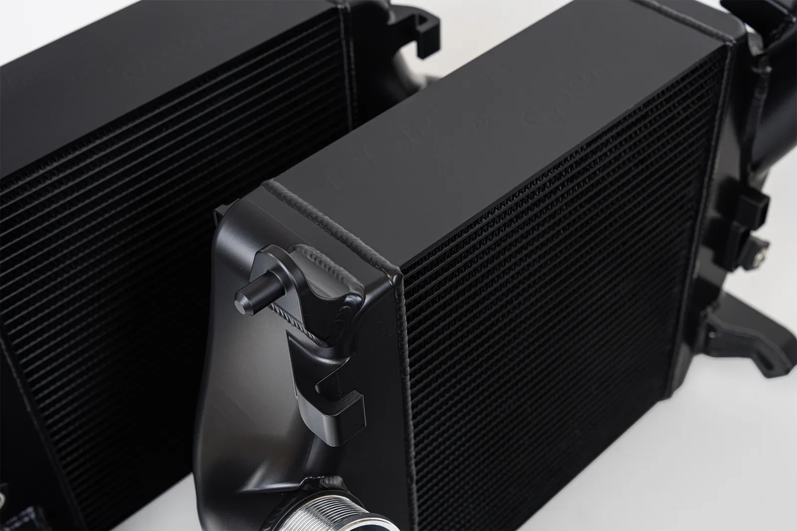 The same intercooler cores used in this application are the same style used in other CSF air-to-air systems developed for the Urus/RS Q8/Cayenne Turbo, Audi RS6/RS7, and Porsche 992 Turbo/S, with incredible results. These cores eliminate heat soak and lower Intake Air Temperatures (IATs) much more efficiently than traditional Bar & Plate designs. This gives us maximum performance for extended periods of time under demanding driving conditions and in vehicles with increased power levels through modifications and tuning.