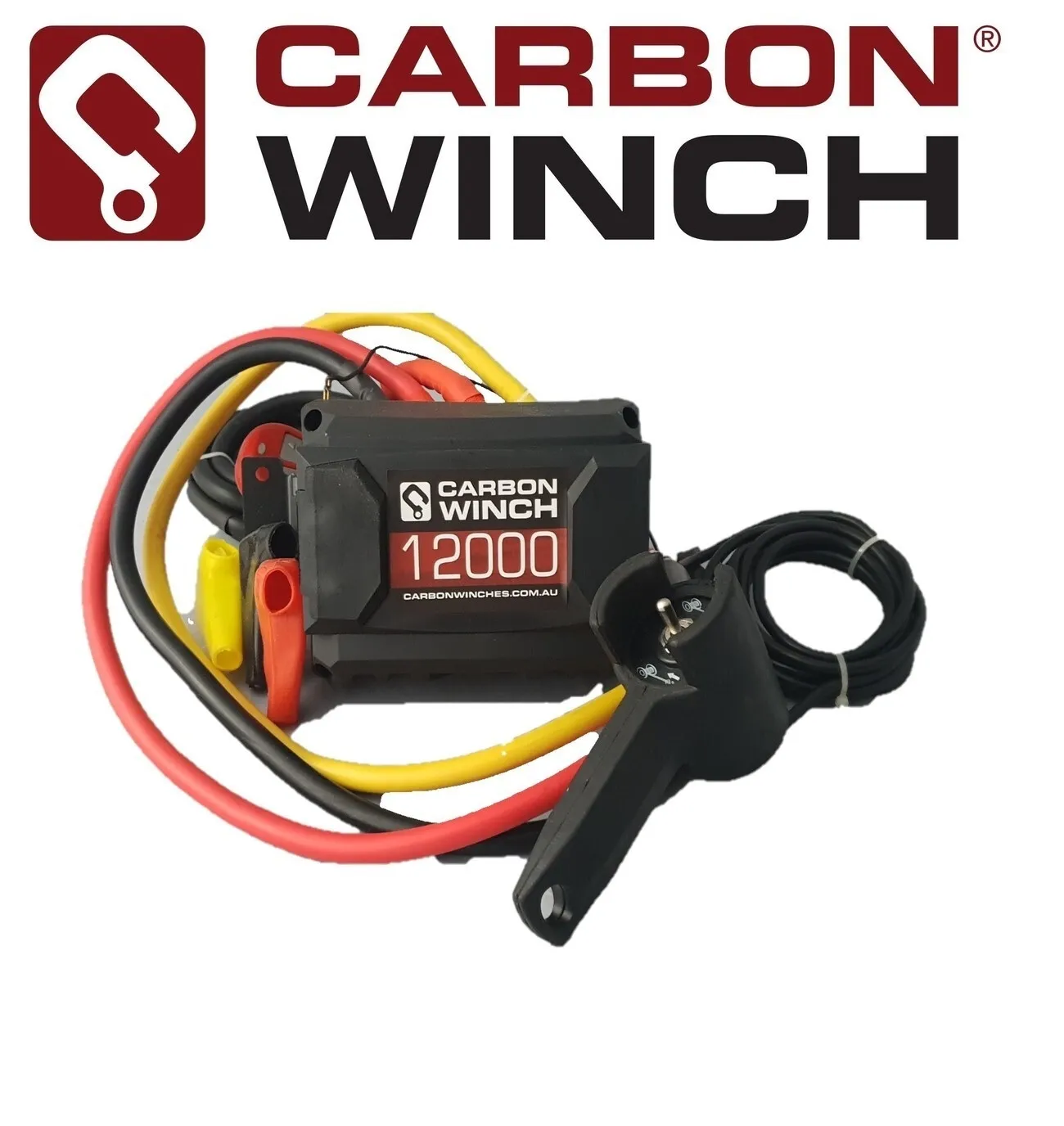 The carbon "offroad 12 volt control box" is an advanced, modern and powerful replacement for your original winch control. This device incorporates a wireless remote that gives you the ability to stay in the cab of your truck but still have complete control over activating or deactivating on site. The carbon offroad 12 volt "control box" also ensures a precise, even amount of power used for every pull as opposed to just one strong one. And unlike the old-fashioned cable, you never have to risk getting tangled from ground level again!