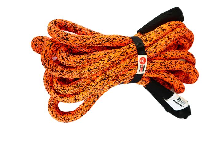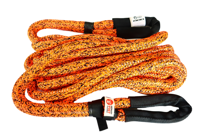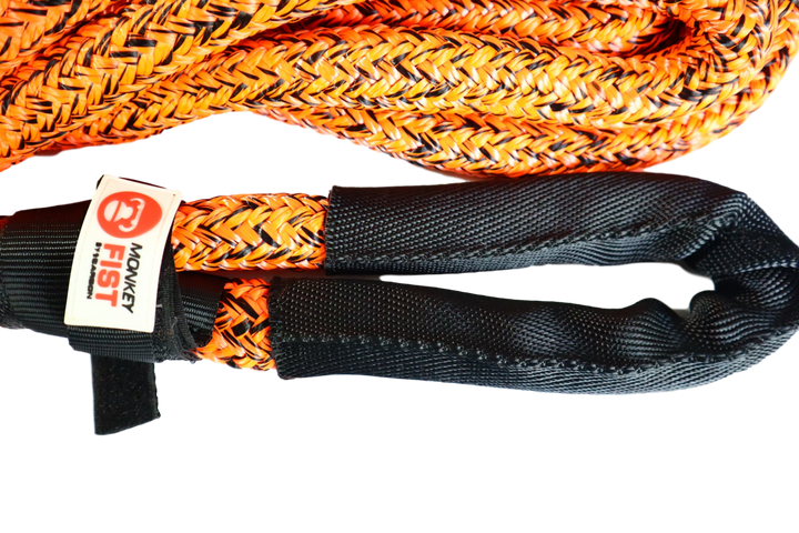 The Carbon Offroad Monkey Fist Kinetic Recovery Rope is a Nylon66(polyamide) double braided core and sheath rope with a specific gravity of 1.21. It is specifically treated with a special coating of the core fibre and sheath fibre which provides a 15% increase in abrasion resistance over similar ropes without the coating.