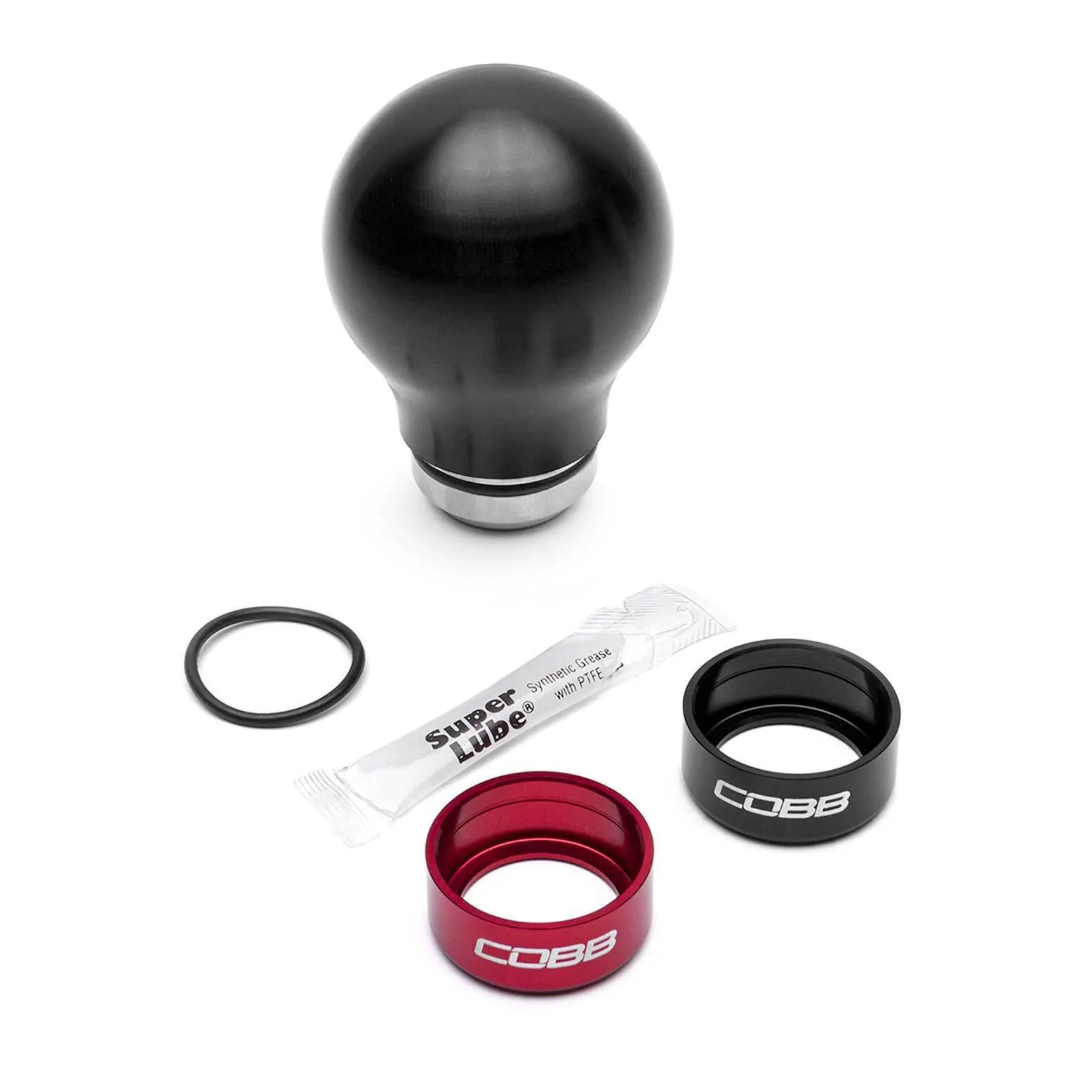 The Short Weighted COBB Knob is designed to keep those extended shifting sessions exhilarating. The billet stainless steel base/insert provides a weight similar to OEM knobs and is internally threaded to provide a tight fit onto the shifter which won't come loose in the most frenzied of gear changes. The delrin upper section ensures comfortable gear changes in the most extreme climates. Both Race Red and Black lower trim rings are included. This knob weighs in at 264g. Spin on a COBB Knob and go for a ride!