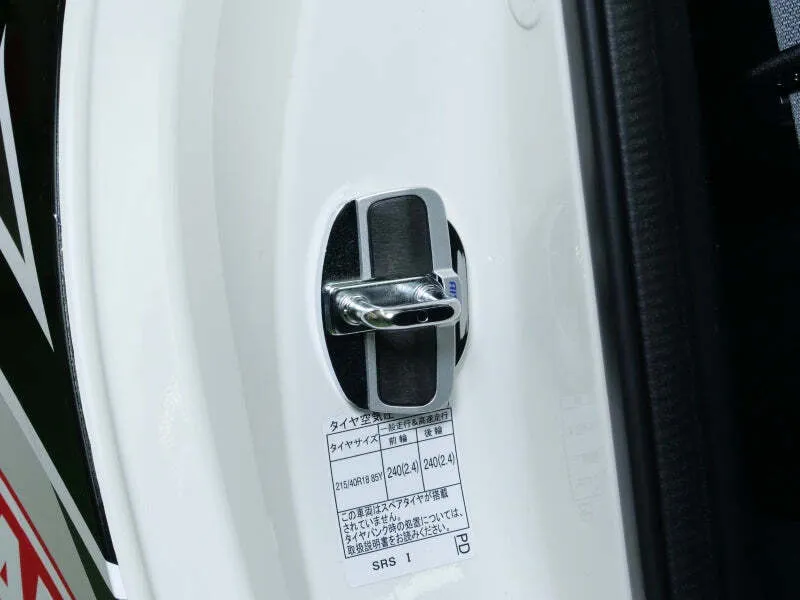 By using a spacer to close the gap between the door catch and the striker and suppressing twisting and distortion of the door opening, the vehicle response delay during steering operations is reduced and quick response is achieved. Material: Steel, resin (nylon) Set for left and right doors