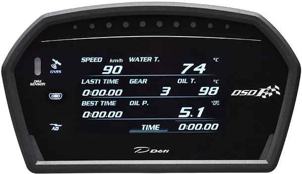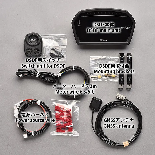 Defi Sports Display F is a multifunctional automotive digital multi-display. You can acquire and display vehicle data from the ADVANCE system, OBDII connector, GNSS (satellite positioning system including GPS) antenna. In addition, by connecting a commercially available USB memory, it is possible to record and playback driving data and analyze it with PC software.