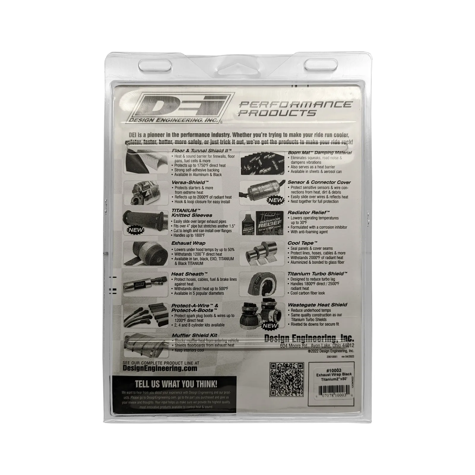 Includes: One 50 foot roll of 2 inch wide Black Titanium exhaust wrap.