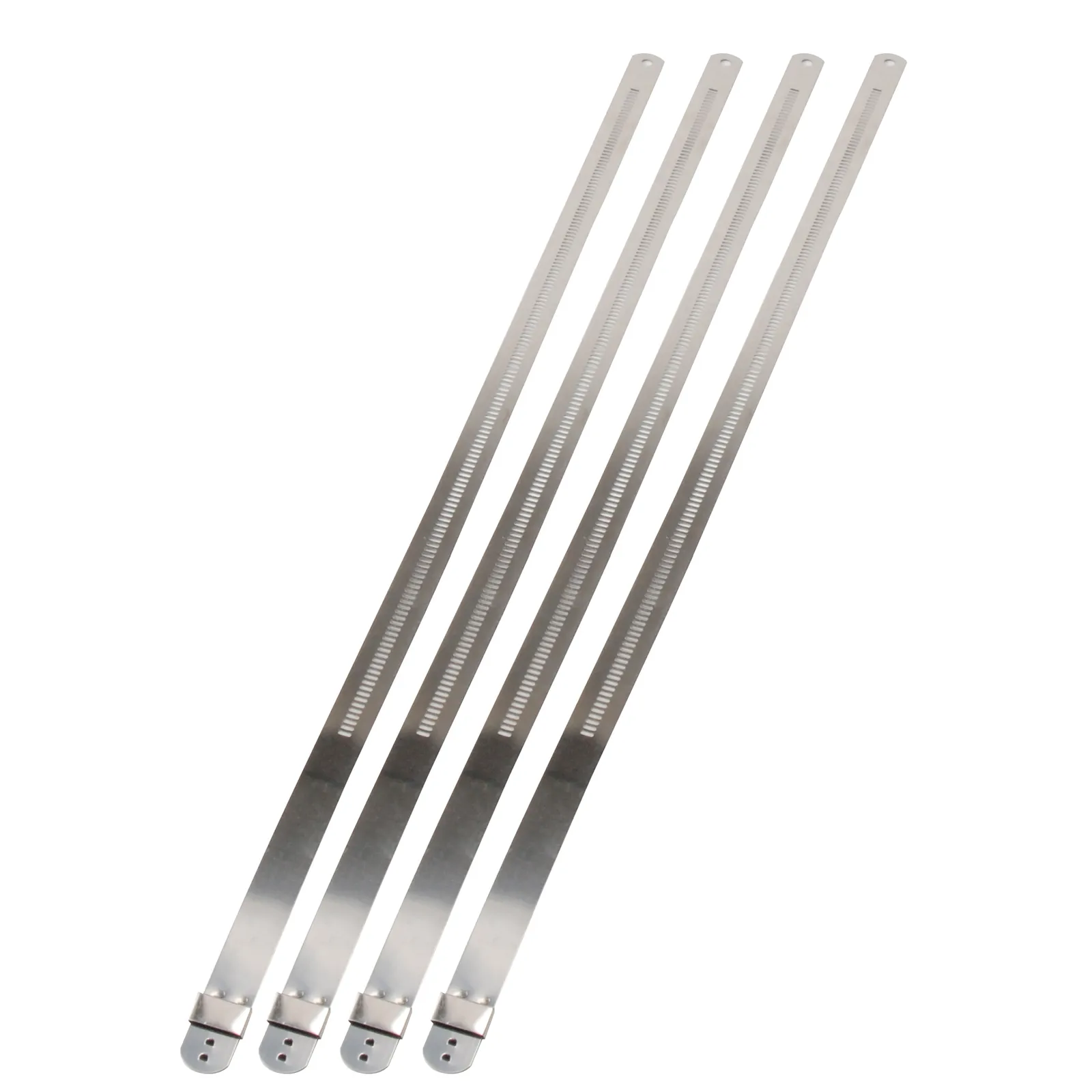Exhaust Wrap Ties - Locking - 12 mm Wide - 14 in Long - Heat Resistant - Stainless - Set of 4