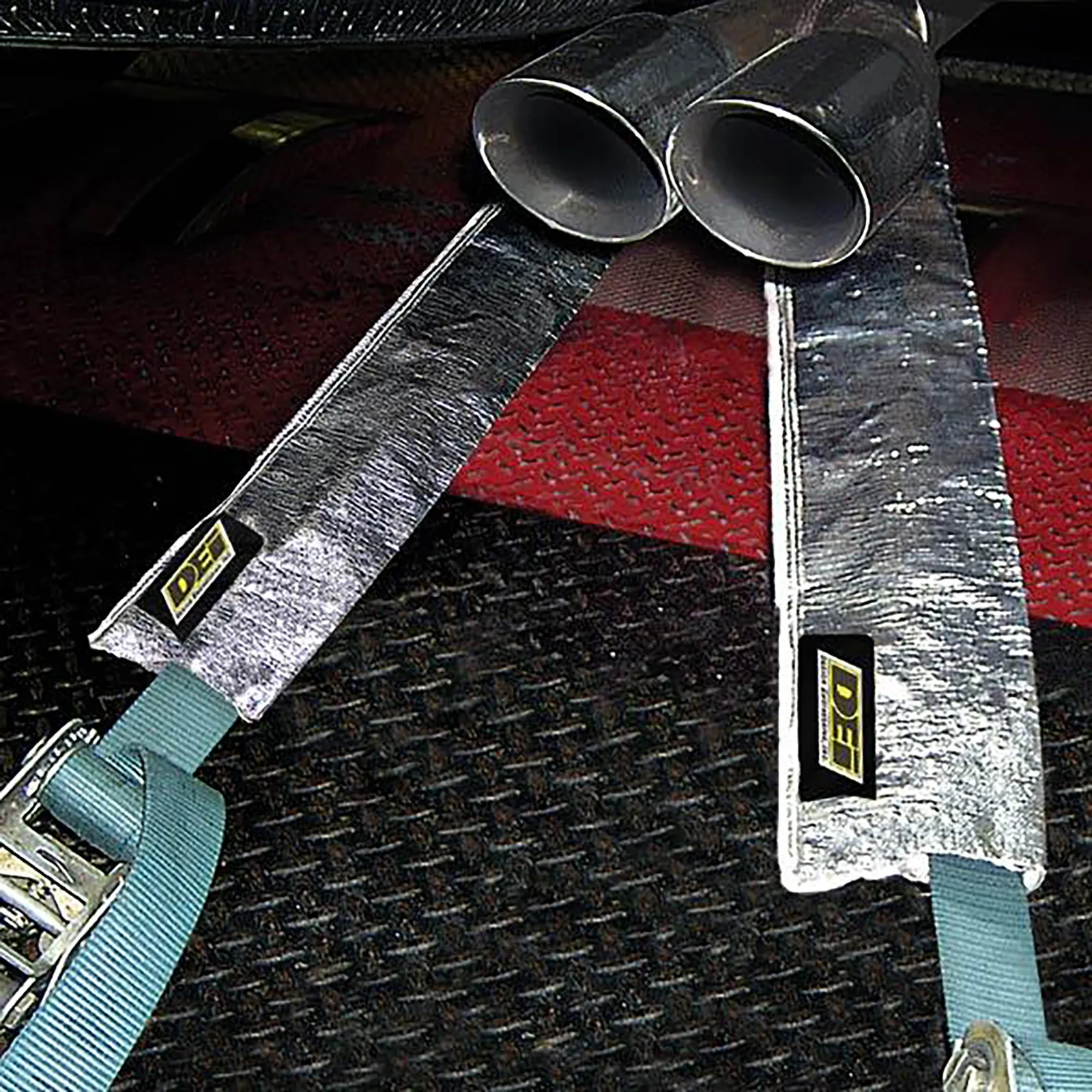 Protects Dynamometer tie-down straps from burn-through caused by exhaust exit heat Made of a hi-temp resistant aluminized mylar material Withstands 500°F direct / 2000°F radiant heat Easily slips over dyno tie down straps 36 in. long x 5 in. wide
