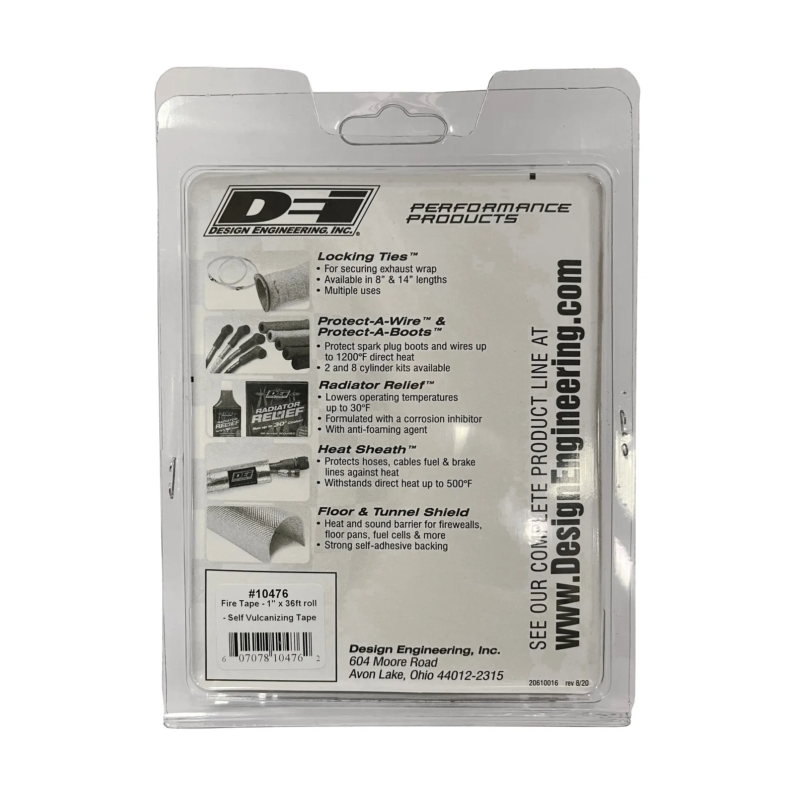 Fire Tape is a multi use self-fusing tape that can be used to cover wires, seal temporary leaks, and much much more. Made of a non-adhesive silicone rubber, Fire Tape is waterproof, remains flexible, and does not leave a sticky residue after removal. Ideal for use with Fire Sleeve and other DEI line & hose protective sleeving products, this self-adhesive tape serves as an excellent insulating alternative to vinyl tapes and wraps. Other uses include wrapping wiring harnesses, cover and protect wire splices, and electrical wire terminations. Corrosion & moisture resistant Stretch & wrap application 700 psi tensile strength Permanent air/liquid tight seal Withstands 500°F direct continuous heat Self-bonding and self-curing Does not harden - remains flexible 1 inch wide x 36 feet