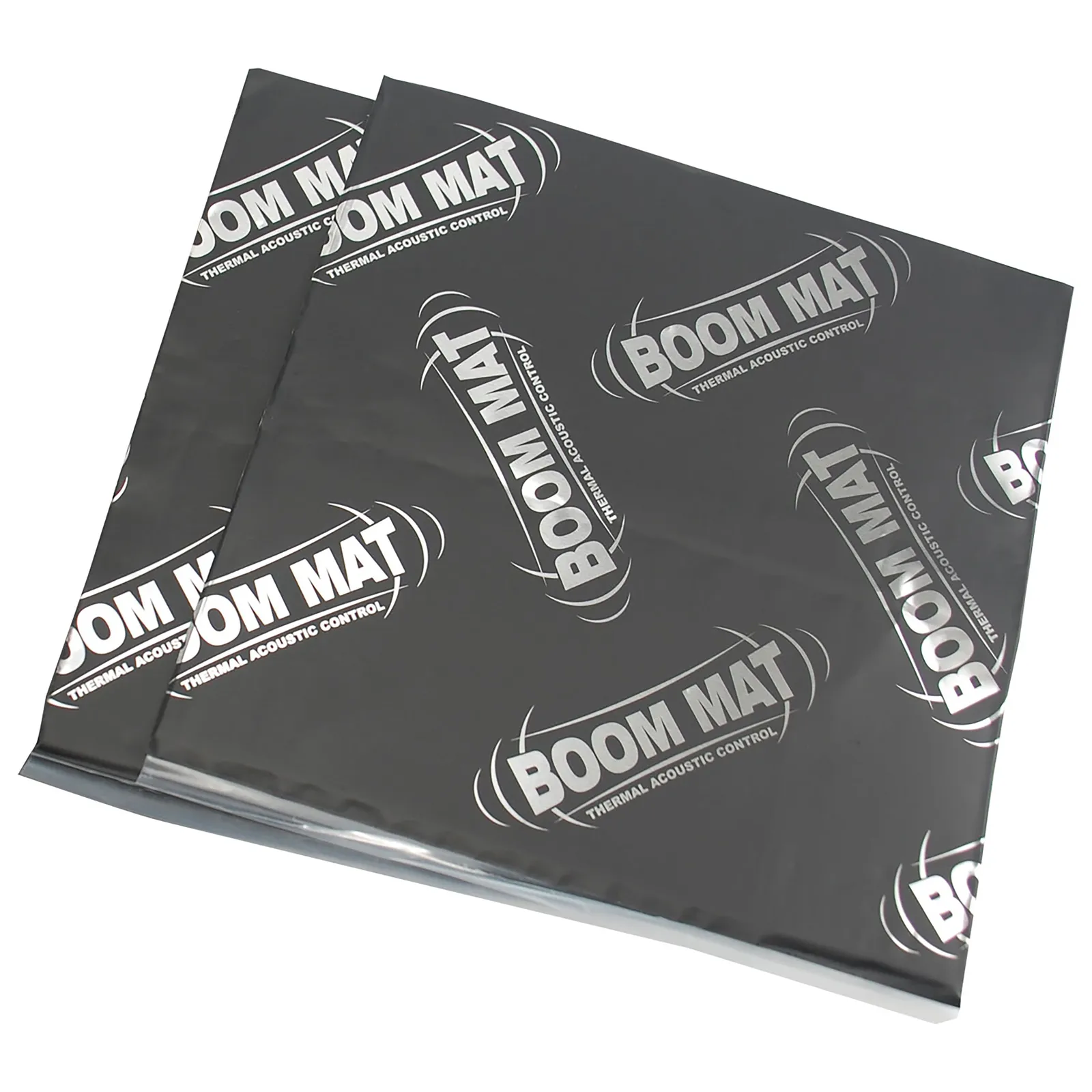 Boom Mat Damping Material solves the problem of noise, vibrations, squeaks and rattles that come from roads, stereos, engines & more. Boom Mat Vibration Damping Material is a premium quality damping material providing extreme noise damping for the most demanding commercial and sound competition applications. Interior panels vibrate and generate noise. Boom Mat stops that noise by trapping it between our thick, 4 mil aluminum stiffening top skin and the asphalt free, pure butyl, noise constraining layer. Plus worry-free no snag adhesion to any interior surface, vertical or overhead, even in the most demanding of temperature extremes. Those quality components are what makes Boom Mat Vibration Damping Material require only 25-50% coverage to get the job done. This saves weight, material cost and installation time. Easy peel plastic release liner (not a paper backing that tears) Enhances stereo performance and sound Gives you a quiet and comfortable interior Minimal prep & install time Performs in extreme temperatures Use as a first layer to control noise and dampen vibrations 2 (two) 12.5in x 24in sheets (4 sq. ft.) 2mm thick