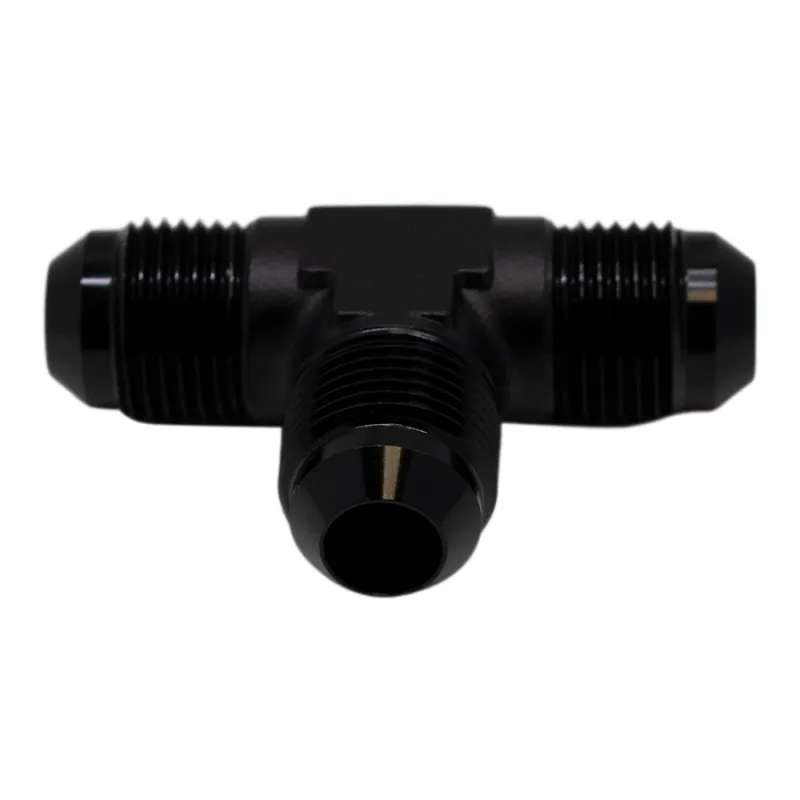 8AN Male Flare to 8AN Male Flare to 8AN Male Flare Tee Fitting, Anodized Matte Black