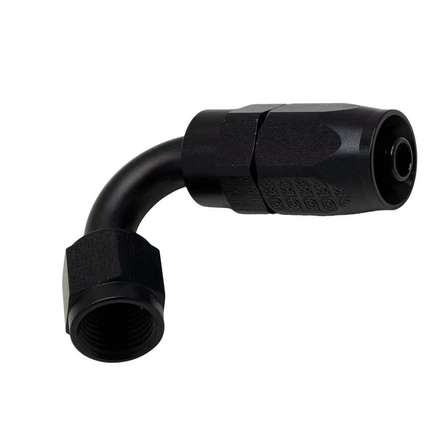 6 AN Female Flare Swivel 120-Degree Hose End CPE, Anodized Matte Black