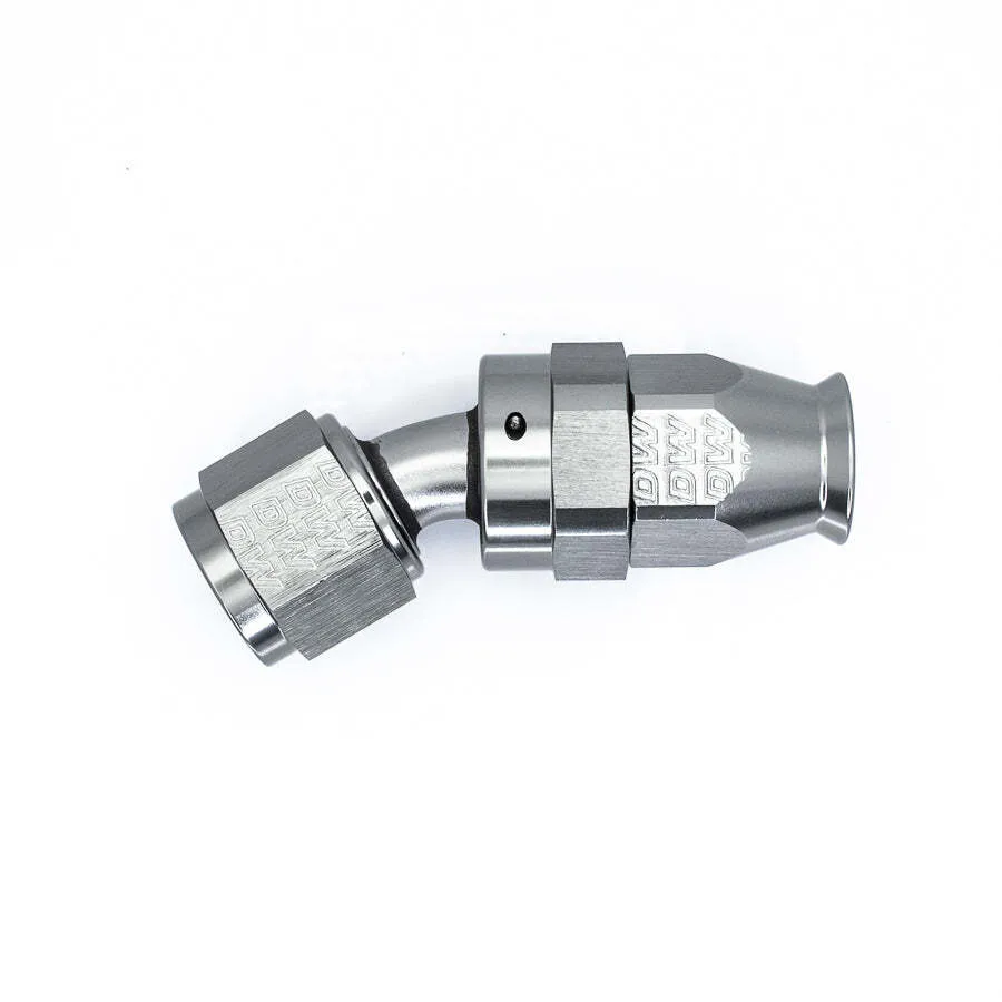 DW fuel fittings are manufactured to every applicable JIC and SAE standard and are constructed of heat-treated 6061 T-6 aluminum that is anodized in a titanium finish. The titanium finish compliments both OE and aftermarket engine bays and hides tool marks far better than sandard black fittings. These high-grade materials and coatings are strong, light, and anti-corrosive for use in the most demanding fuel systems. The DW line of fittings is an ever expanding offering to meet the needs of our customers fuel systems.