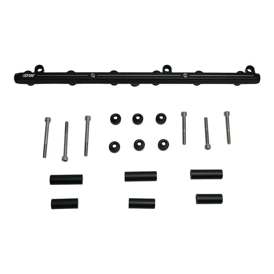 Quality - DW fuel rails are CNC’d from billet T6061 aluminum and hard anodized in a black finish. The new DW rails were designed with integrated CNC brackets; less expensive bolt-on brackets save money but lack stiffness and precision. In addition, DW engineers invested significant design time removing excess material to shave weight and create a sleek signature look resulting in a rail that looks as good as it performs.
