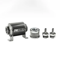 In-line fuel filter element and housing kit, stainless steel 10 micron, 5/16in hose barb, 70mm. Universal