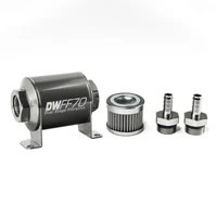 In-line fuel filter element and housing kit, stainless steel 100 micron, 3/8in hose barb, 70mm. Universal