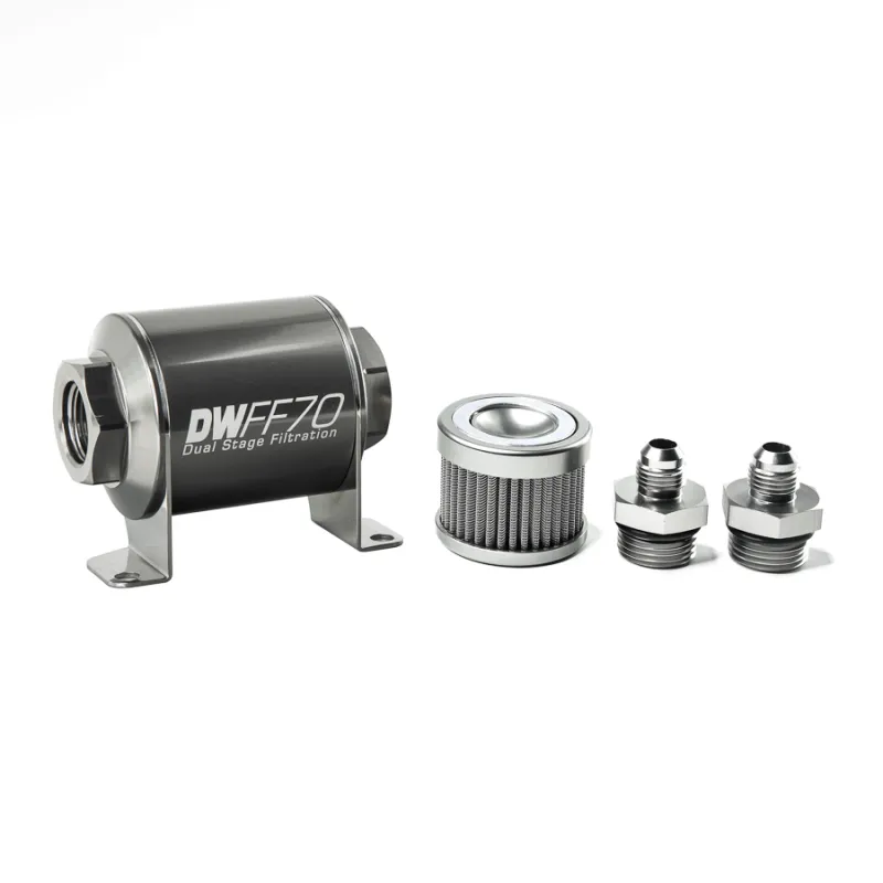 In-line fuel filter element and housing kit, stainless steel 100 micron, -6AN, 70mm. Universal