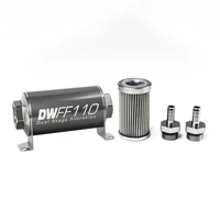 In-line fuel filter element and housing kit, stainless steel 10 micron, 3/8in hose barb, 110mm. Universal