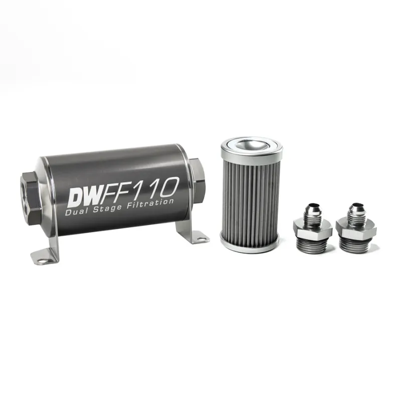 In-line fuel filter element and housing kit, stainless steel 40 micron, -6AN, 110mm. Universal