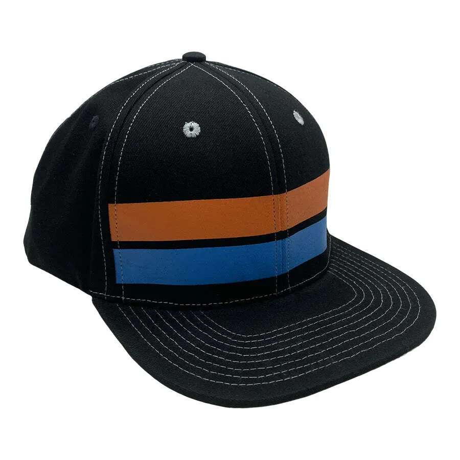 Black Flexible Fitted Hat with Stripes Across on Front and DW Logo on Side