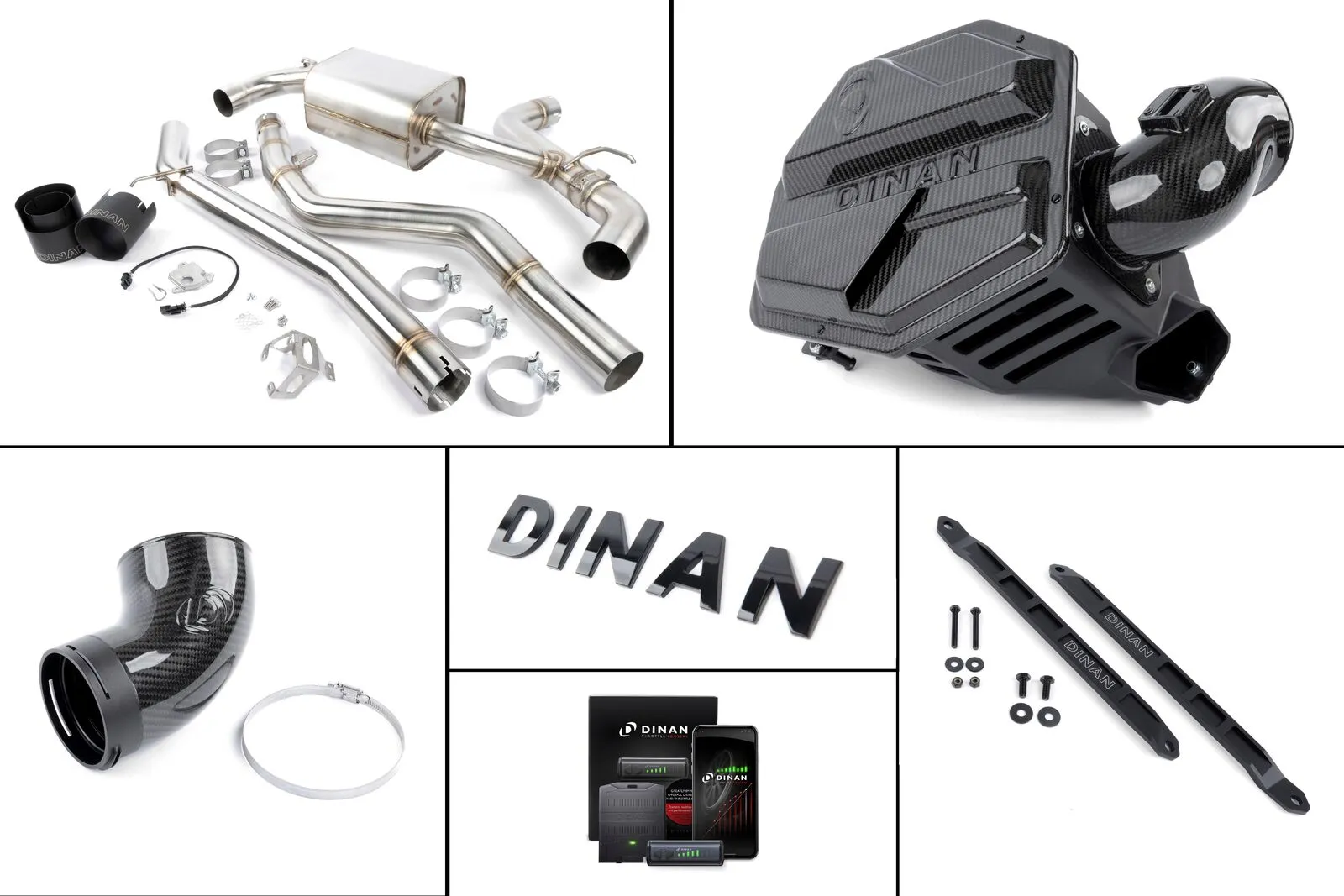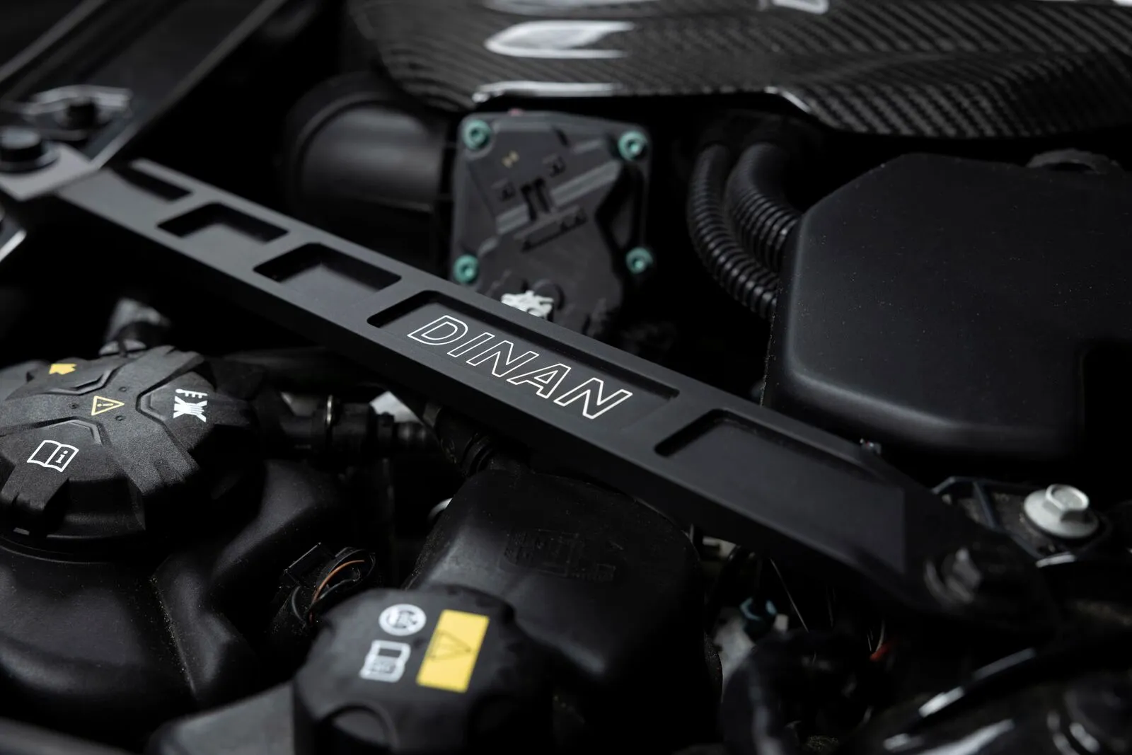 Dinan Carbon Fiber Cold Air Intake (D760-0065) and Turbo Inlet (D760-0062) for increased flow, efficiency as well as underhood visual appeal