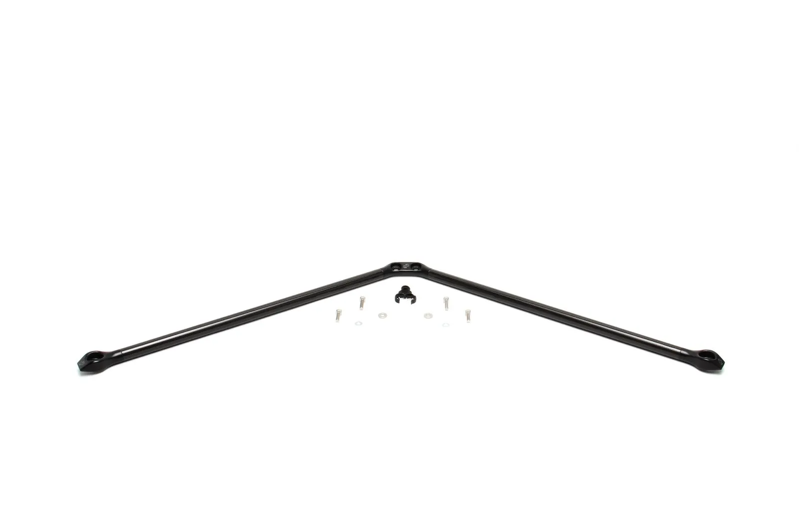 The Dinan Carbon Fiber Front Strut Tower Brace is built from aerospace quality aluminum and carbon fiber. The amazingly strong carbon fiber rods are held in place with black powdercoated forged aluminum ends connecting to the stock mounts. Adding this beautiful piece will improve chassis rigidity while also cleaning up the look of the engine by framing it in carbon fiber. The beautiful carbon fiber braces may be installed in conjunction with any of the Dinan suspension systems or the stock components.