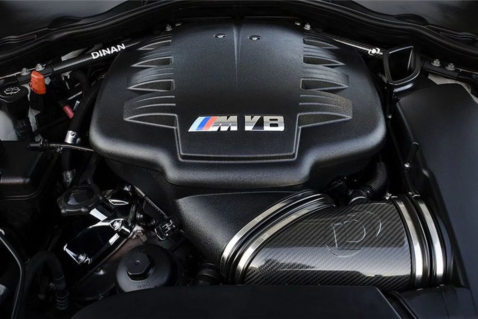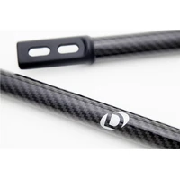 The Dinan carbon fiber strut tower braces are built from aerospace quality aluminum and carbon fiber. The amazingly strong carbon fiber rods are held in place with black powdercoated forged aluminum ends connecting to the stock mounts. Replacing the bare aluminum tube with this beautiful piece will improve chassis rigidity while also cleaning up the look of the engine by framing it in carbon fiber. The beautiful carbon fiber braces may be installed in conjunction with any of the Dinan suspension systems or the stock components and features carbon fiber that matches the high flow carbon fiber intake in color and weave.