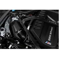 The Dinan G8x Strut Tower Brace provide additional rigidity and sharper handling to the chassis by reducing flex under hard cornering conditions. With more control, spirited driving becomes easier and infinitely more enjoyable. The lightweight brace is designed with maximum function in mind and includes linking structural elements that completely change the OEM 2-piece strut bar set into one blended system that offers additional strengthening against flex. Not one to take a back seat to functionality, aesthetics are also elevated beyond simple steel bars into striking carbon fiber (matte or gloss) with accents that tie in effortlessly into the highly geometric and angular factory engine bay for an OEM+ feel.