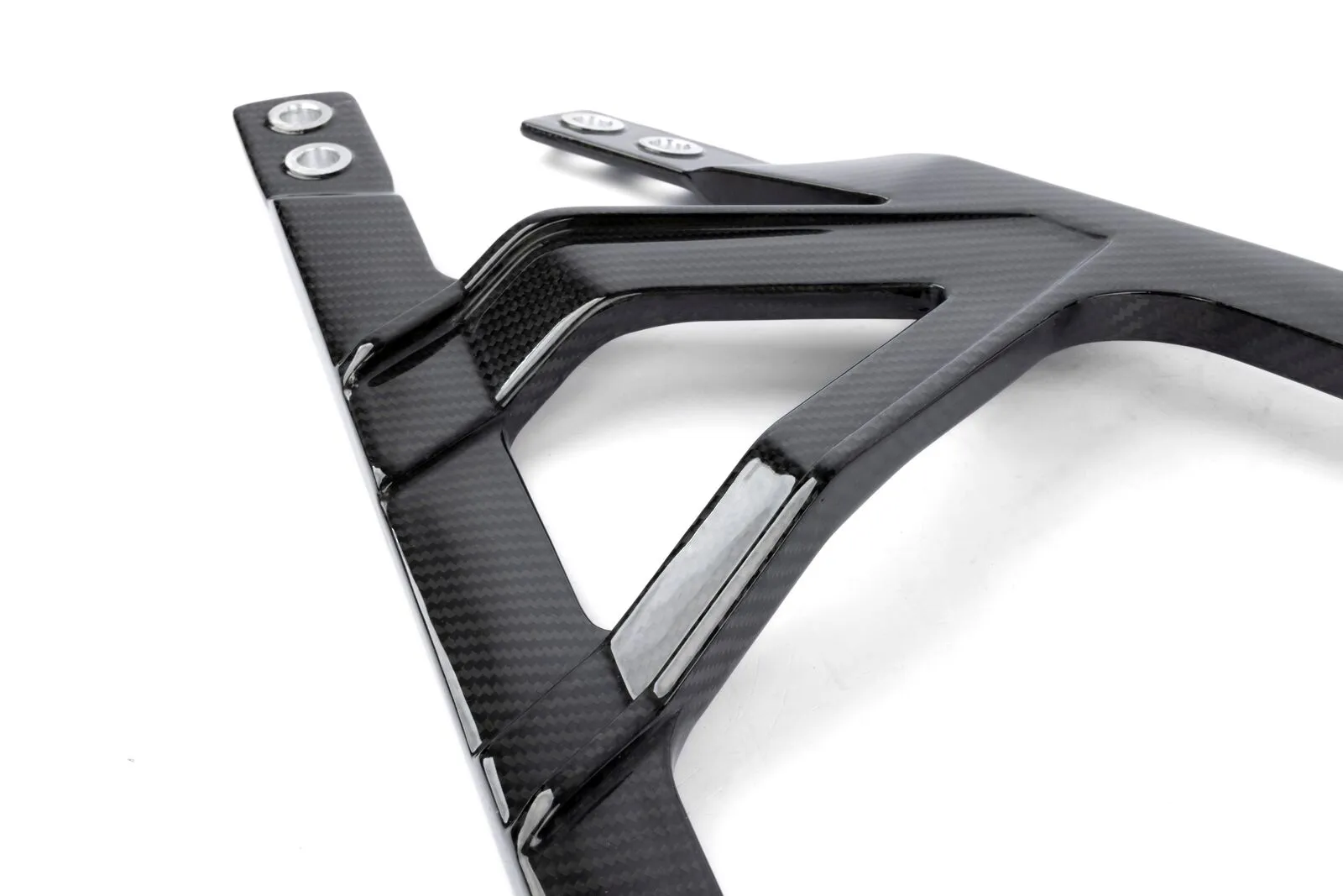• 2x2 twill carbon fiber with inset aluminum mounting points for increased strength and improved visual appeal