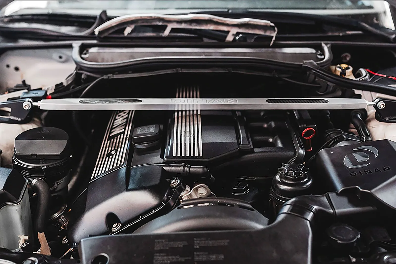 Dinan Strut and Shock Tower Braces help to maintain the structural integrity of the towers over the life of the vehicle as well as providing sharper handling by reducing flex under harder cornering conditions. The attractive brushed aluminum and carbon fiber braces may be installed in conjunction with any of the Dinan Suspension Systems or the stock components. The end brackets are machined for precise fitment over the strut tower reinforcements for a clean and solid installation.