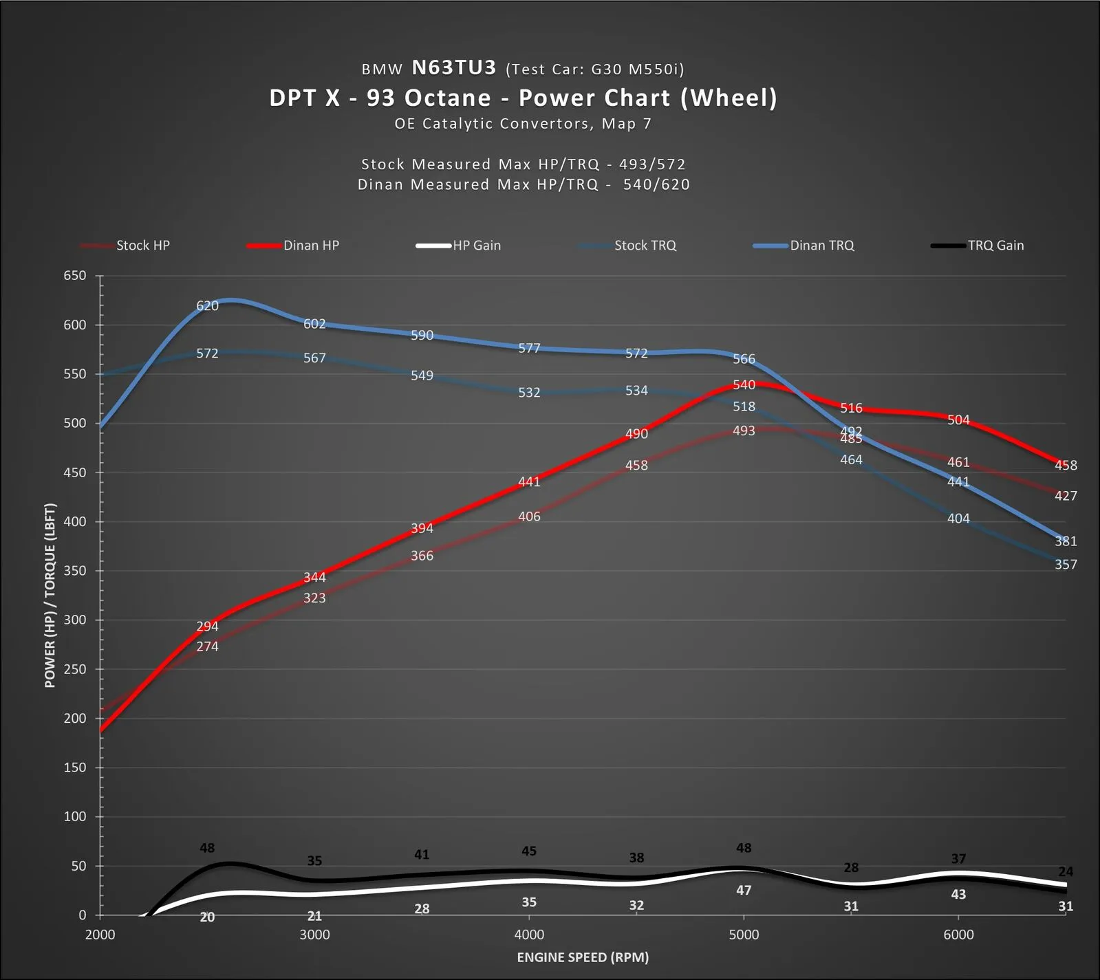 A further advancement beyond its entry level little brother, the DINANTRONICS SPORT, X connects to additional inputs and/or has a more refined tuning strategy that yields more power as a result. For those that do not wish to (or can't) alter their stock ECU with a more robust engine flash the DINANTRONICS X is a perfect alternative to satiate the craving for "more". Whichever level of engine tuning is ultimately chosen you can be sure to be pleased by the result. The Dinan Difference is possible by employing a full staff of talented engineers that are well rounded in many facets of automotive engineering and backed by a wealth of hands-on knowledge. Stemming from diverse backgrounds not only on racing teams but on standard factory production line vehicles, we have seen it all. Manipulating these signals/maps with an adept hand, all the while keeping an engine running at its best and with the most reliable power, is what Dinan is all about.
