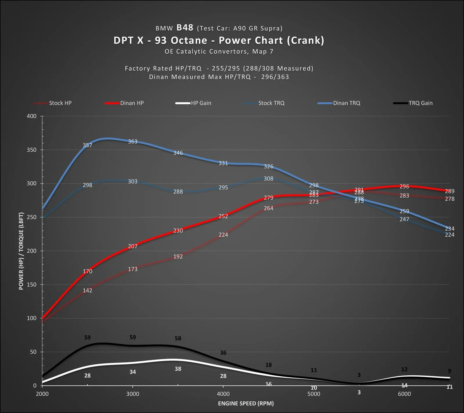- More Power: Max gains of up to +38 HP and +59 lb-ft TRQ (Crank); +35 HP and +55 lb-ft TRQ (Wheel).