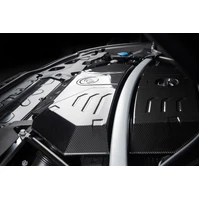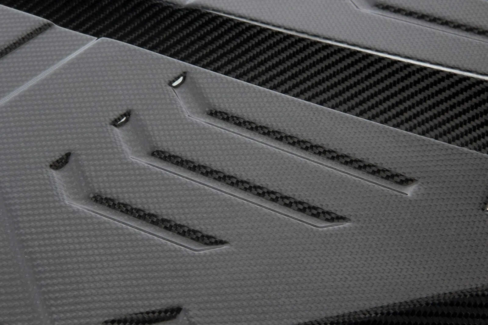 • Generous amount of gloss UV coated 2x2 carbon fiber encompassing a huge swath of the engine bay for maximum under hood appeal.