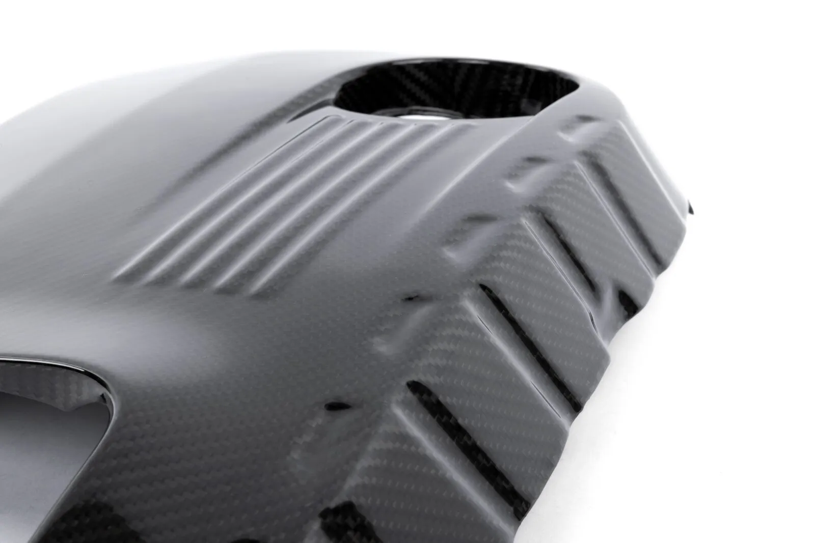 Upgrade the under-hood aesthetics of your S55 powered BMW with the Dinan Carbon Fiber Engine Cover! This direct replacement of the dull factory plastic engine cover offers OEM+ levels of refinement to the engine bay with its hand crafted 2x2 twill carbon fiber with a meticulously laid and uniform weave. It's also built to last with a gloss clear coat for UV-protection and added durability ensuring you will enjoy the extra appeal it offers for the duration. Get yours today and enhance your S55 in moments!