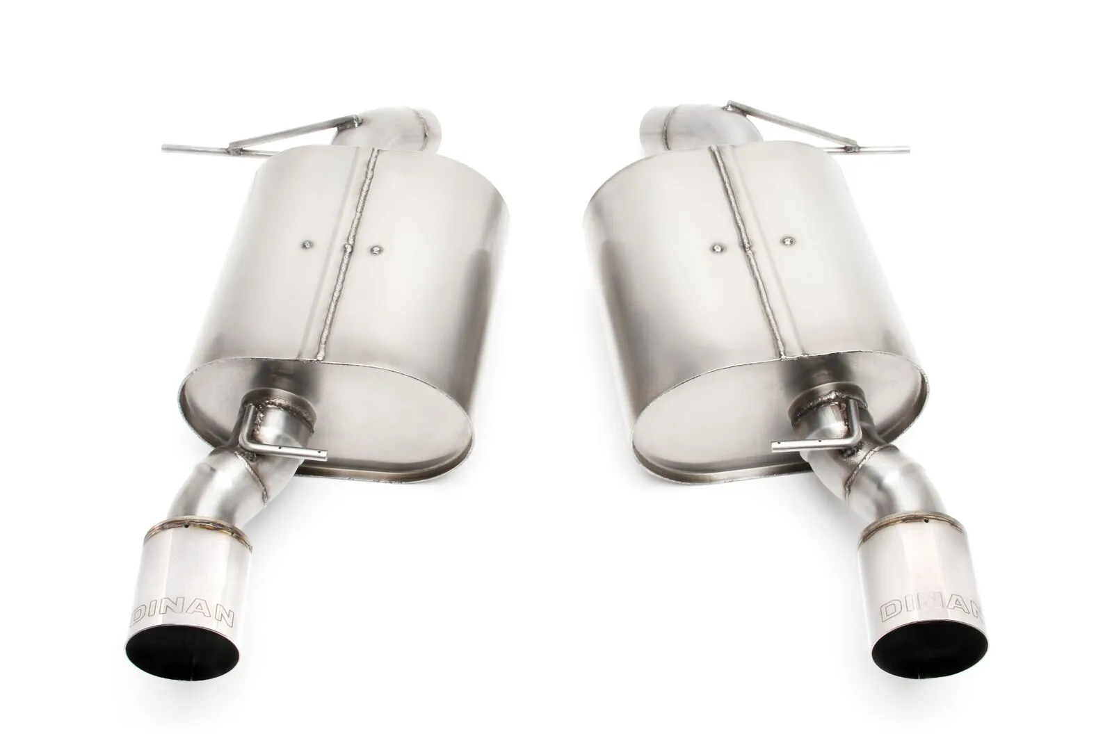 Dinan's free flow Axle-Back exhaust for the 335i Sedan improves exhaust flow by reducing back pressure, resulting in increased power output and a great sporty sound that is civilized when you want it to be and pleasantly aggressive under harder acceleration. 100% stainless steel construction and exacting specifications ensure that the system fits correctly using the factory hangers and will resist corrosion for years to come. The design reduces overall weight as well and features 3.5'' polished stainless, or ceramic black, tips for a tasteful high-performance look.