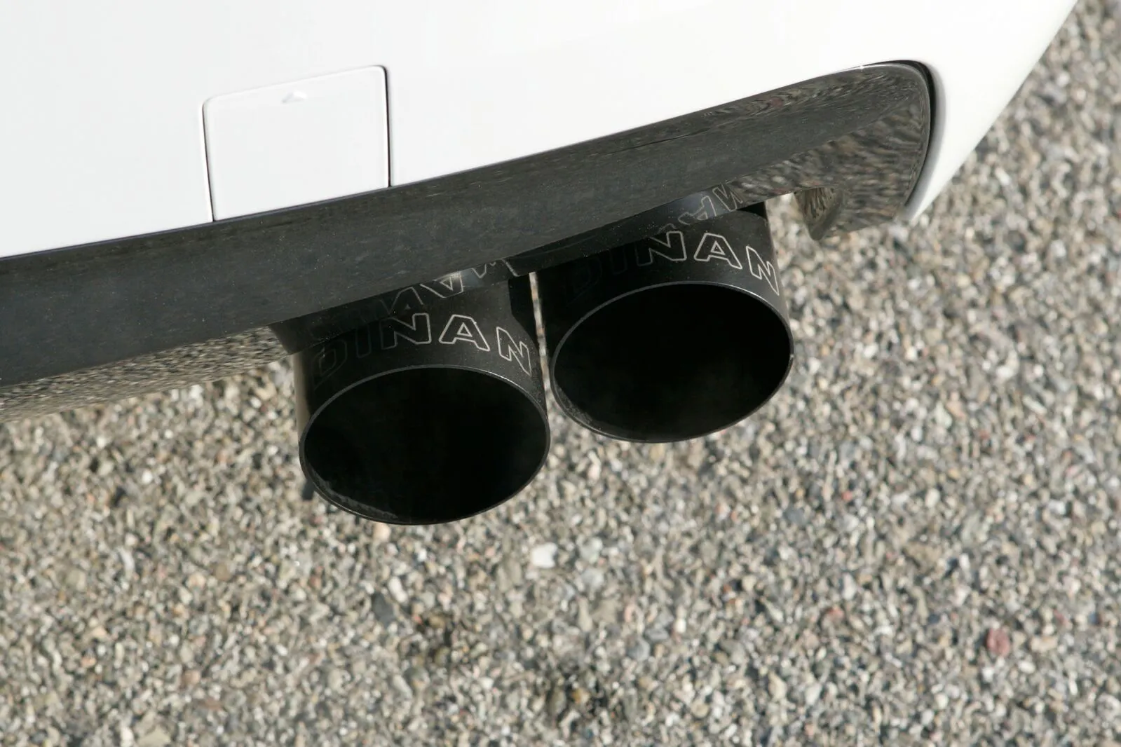 Dinan's Free Flow Axle-Back Exhaust improves exhaust flow by reducing back pressure, resulting in increased power output and a great sporty sound that is civilized when you want it to be and pleasantly aggressive under harder acceleration with zero drone. 100% stainless steel construction and exacting specifications ensure that the system fits correctly using the factory hangers and will resist corrosion for years to come. A vacuum controlled butterfly valve is utilized to improve flow at wide-open throttle while keeping things civilized and "drone" free throughout. The design reduces overall weight as well and features 3.5'' polished, or ceramic black, tips for a tasteful high-performance look.
