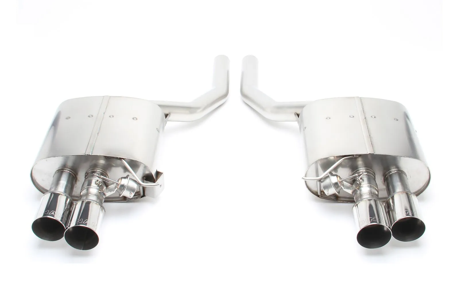 Dinan's Free Flow Axle-Back Exhaust improves exhaust flow by reducing back pressure, resulting in increased power output and a great sporty sound that is civilized when you want it to be and pleasantly aggressive under harder acceleration with zero drone. 100% stainless steel construction and exacting specifications ensure that the system fits correctly using the factory hangers and will resist corrosion for years to come. A vacuum controlled butterfly valve is utilized to improve flow at wide-open throttle while keeping things civilized and "drone" free throughout. The design reduces overall weight as well and features 3.5'' polished, or ceramic black, tips for a tasteful high-performance look.