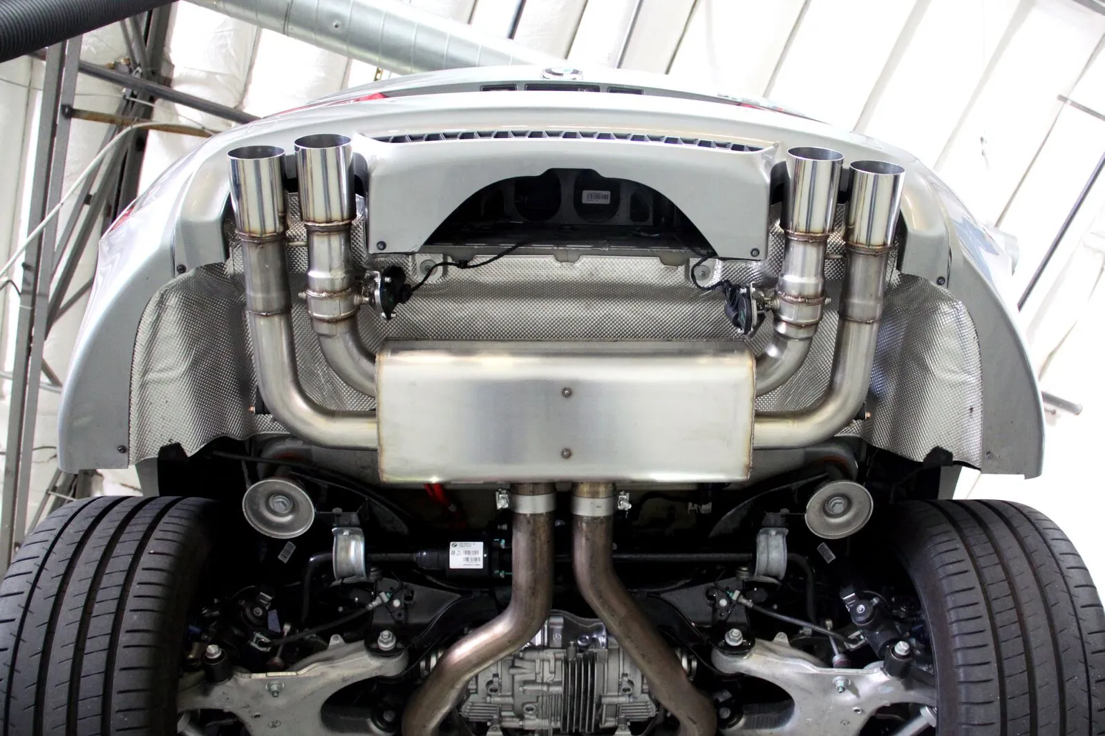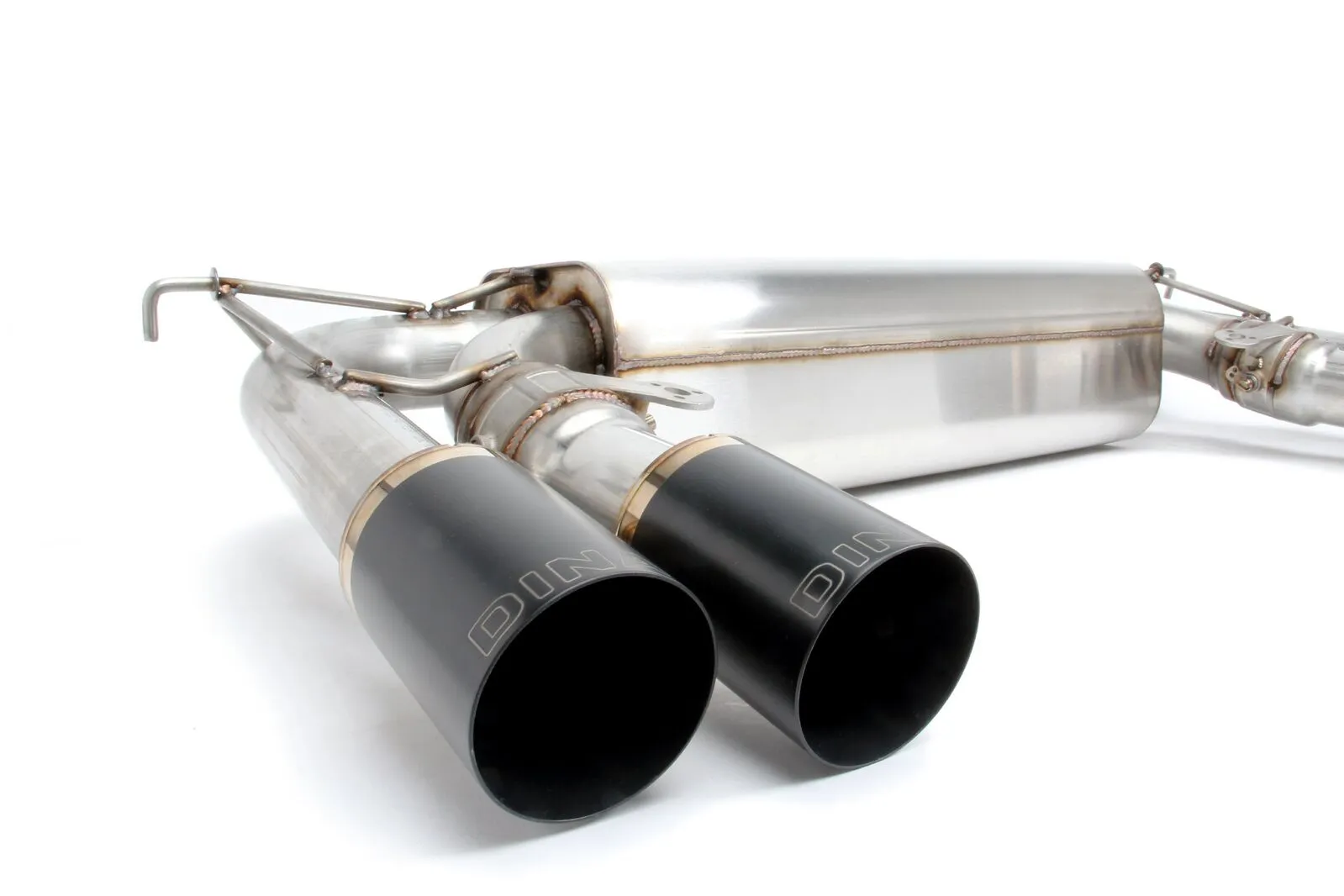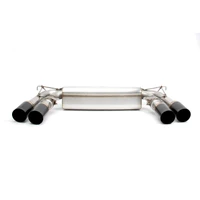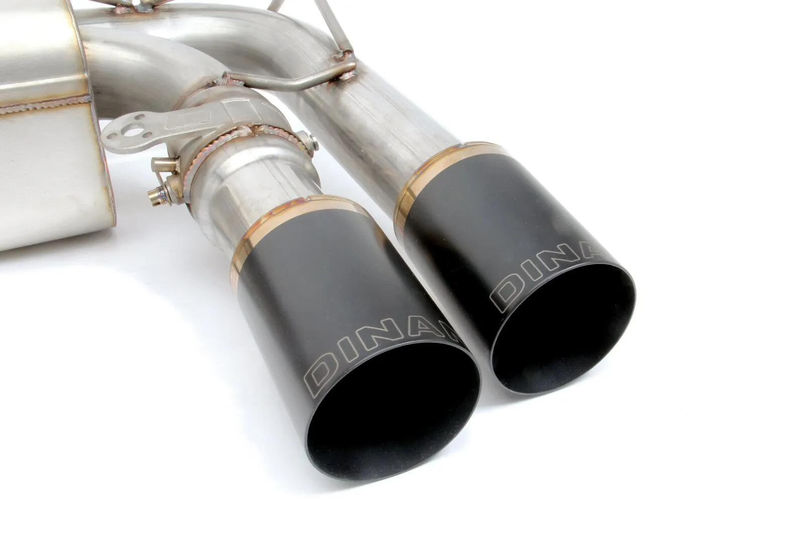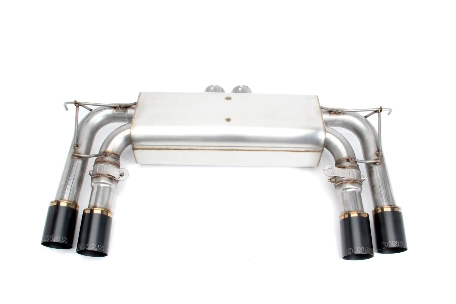The exhaust system was designed to improve exhaust flow by reducing back pressure, resulting in increased power output and a deep sound that is civilized when you want it to be, and pleasantly aggressive under hard acceleration. Dinan also incorporates a Helmholtz chamber design that reduces resonance or "drone" at low RPM. The technology within the can is matched in impressiveness by its outward appearance and design as the system is built to exacting specifications to ensure a simplistic bolt-on installation. It is made from 100% 16 gauge 304 stainless steel and will resist corrosion for years to come. The design features quad 89mm (3.5") black ceramic or polished exhaust tips for a tasteful high-performance look.