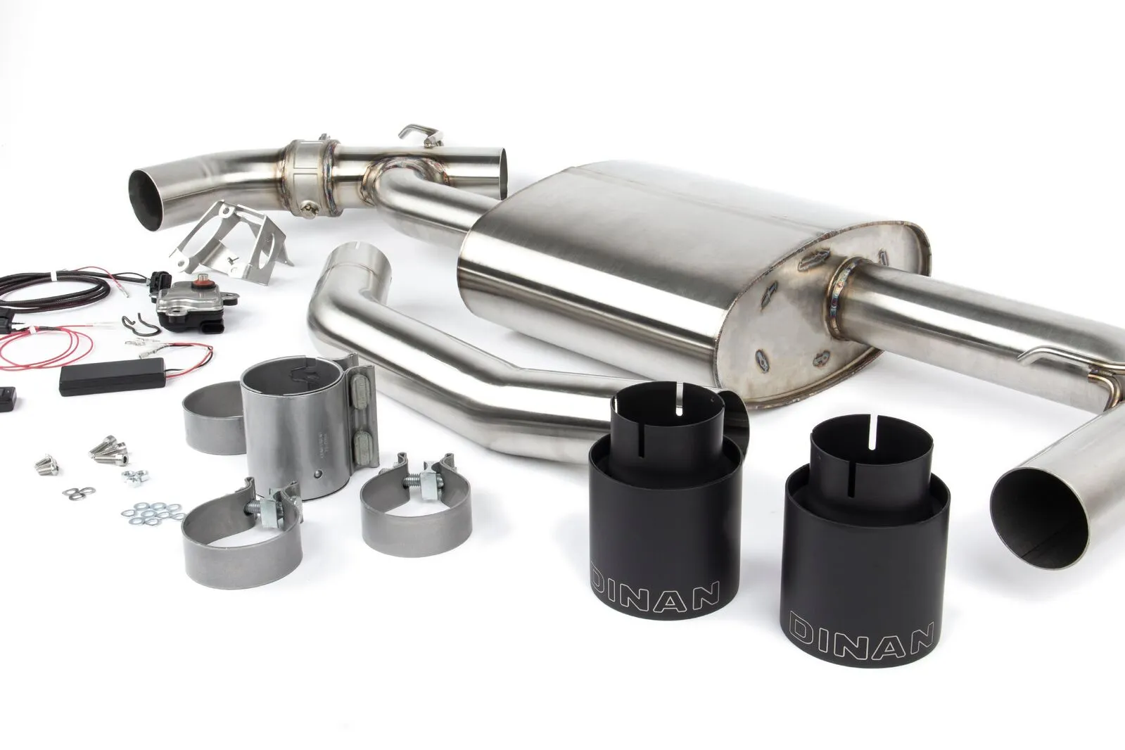 While sound is the primary reason for any exhaust purchase the styling and craftsmanship also play an important role for the discerning buyer. The Dinan F60 Countryman S exhaust has been skillfully crafted entirely out of T304 stainless steel and TIG welded for the best visual appearance and color. The entire system is then brush-finished to further guarantee an immaculate looking system out of the box. The attention to detail is not limited to parts of the system you can't see once the exhaust is installed but is also extended to the exhaust tips themselves. The Dinan exhaust sports enormous, dual 4" (102mm) clamp-on, double-walled, black ceramic coated and laser engraved exhaust tips. Dinan has retained its signature straight cut tip design, safeguarding its unique and elegant styling position, amongst a marketplace dominated by angle cuts. The tips masterfully fill up and accentuate upon the factory cut-outs showcasing an extremely aggressive, yet refined, styling that will turn heads even before it is heard.