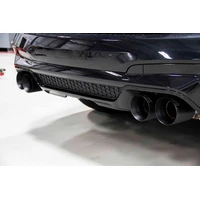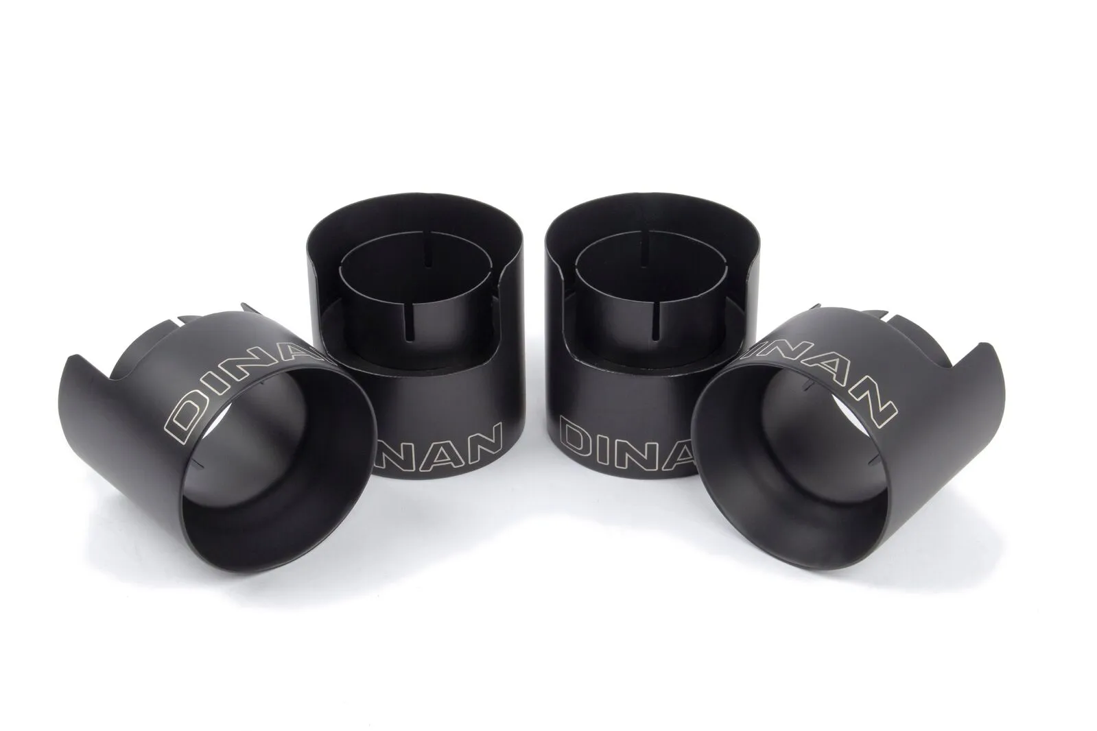 Perhaps equally important to the sound of the installed Dinan axle back system are the resulting aesthetics. With a nearly perfect symmetrical design, the raw muffler and pipe routing are pleasing to the eye even when the matching proportions are only partially visible after install. The piping culminates into four massive 114mm (4.5") tips that fill up the previously spacious factory cut out in the valance without appearing to be oversized and unnatural. The imposing tips utilize a new tip design with an inverted clamp neck. The new style allows for two very important things to happen. The first is the ability to have a longer tip sleeve length without sacrificing real estate for a clamp neck thus allowing larger tips even when there is limited straight pipe to clamp on to. Secondly, the interior clamp neck means that the clamp itself is almost completely hidden from view for an unblemished install. Dinan has retained its signature straight cut tip design, safeguarding its unique and elegant styling position amongst a crowded marketplace full of angle cuts. With systems available with either black ceramic coated or polished clamp-on, and laser engraved exhaust tips, there is a version that is sure to meet your individual aesthetic needs.